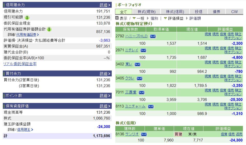 デイトレのつもりで「サンリオ(8136)」を買ったけど、損切り予定の場所でカット出来ずに大きな含み損に。