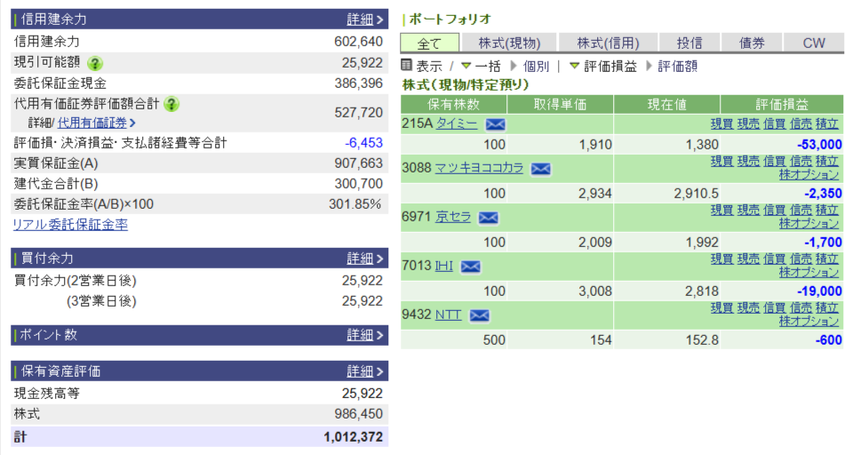 現物だけにして長期保有って思ってるけど、どんどん含み損が増えてつらい。