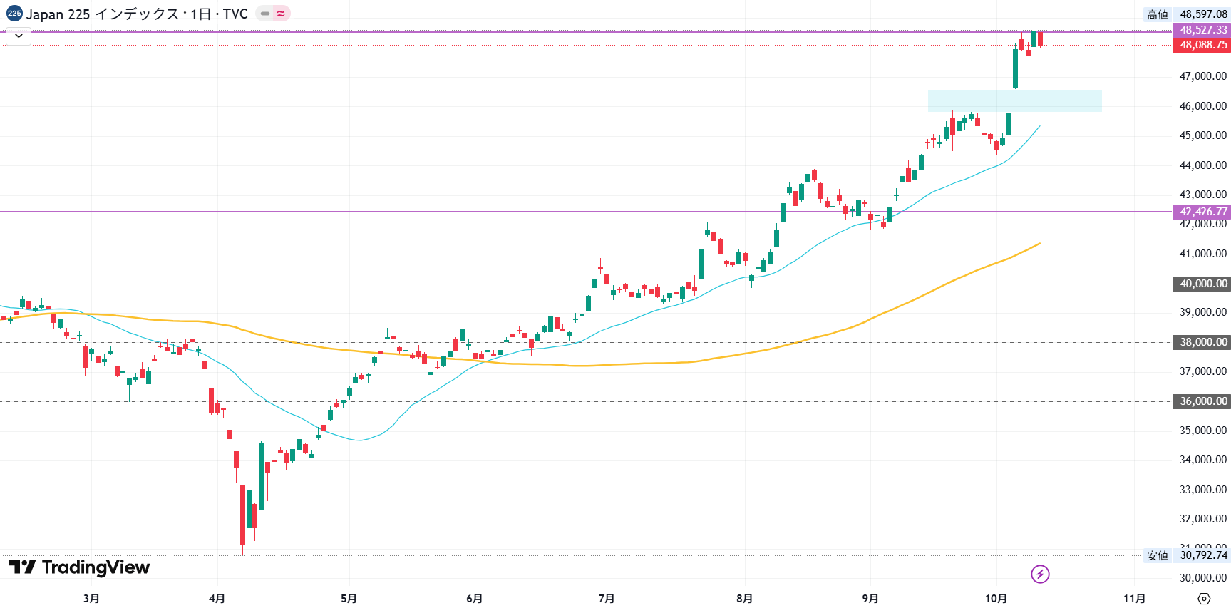 日経平均:48,510円 → 48,088円(前日比-491円:-1.0%)