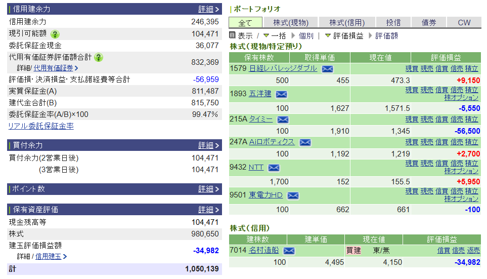 ポジションが多すぎて余力がほぼ0だったので、一部利確&損切りして調整。