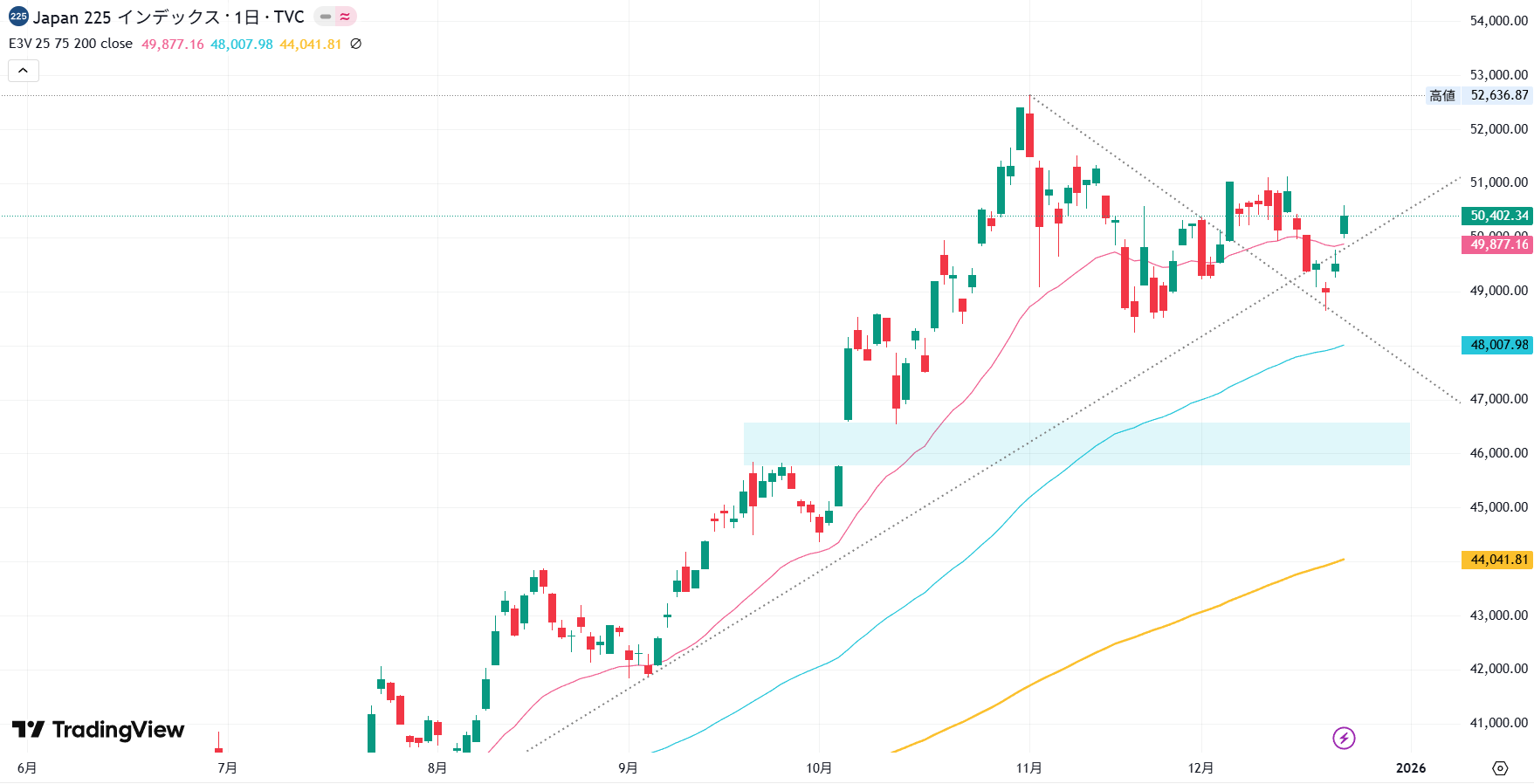 日経平均:50,084円 → 50,402円(前日比+895円:+1.81%)