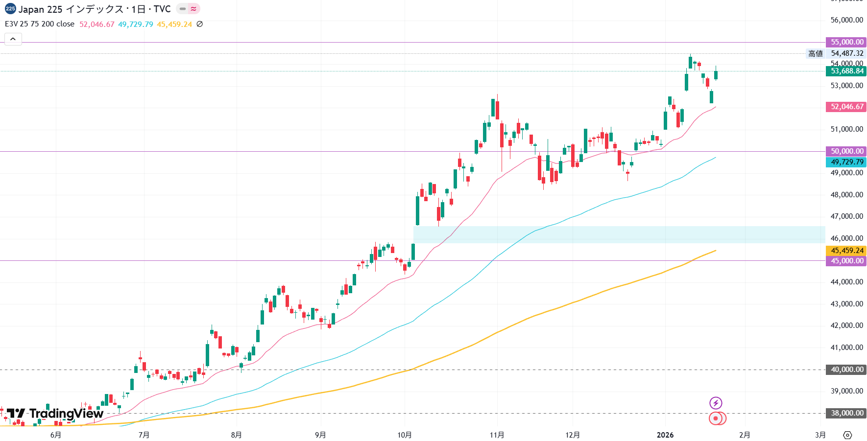 日経平均:53,327円 → 53,688円(前日比+914円:+1.73%)