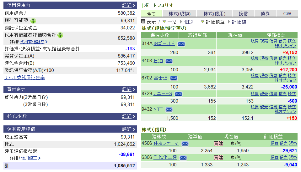 | 現在資産 | 1,085,512円 |