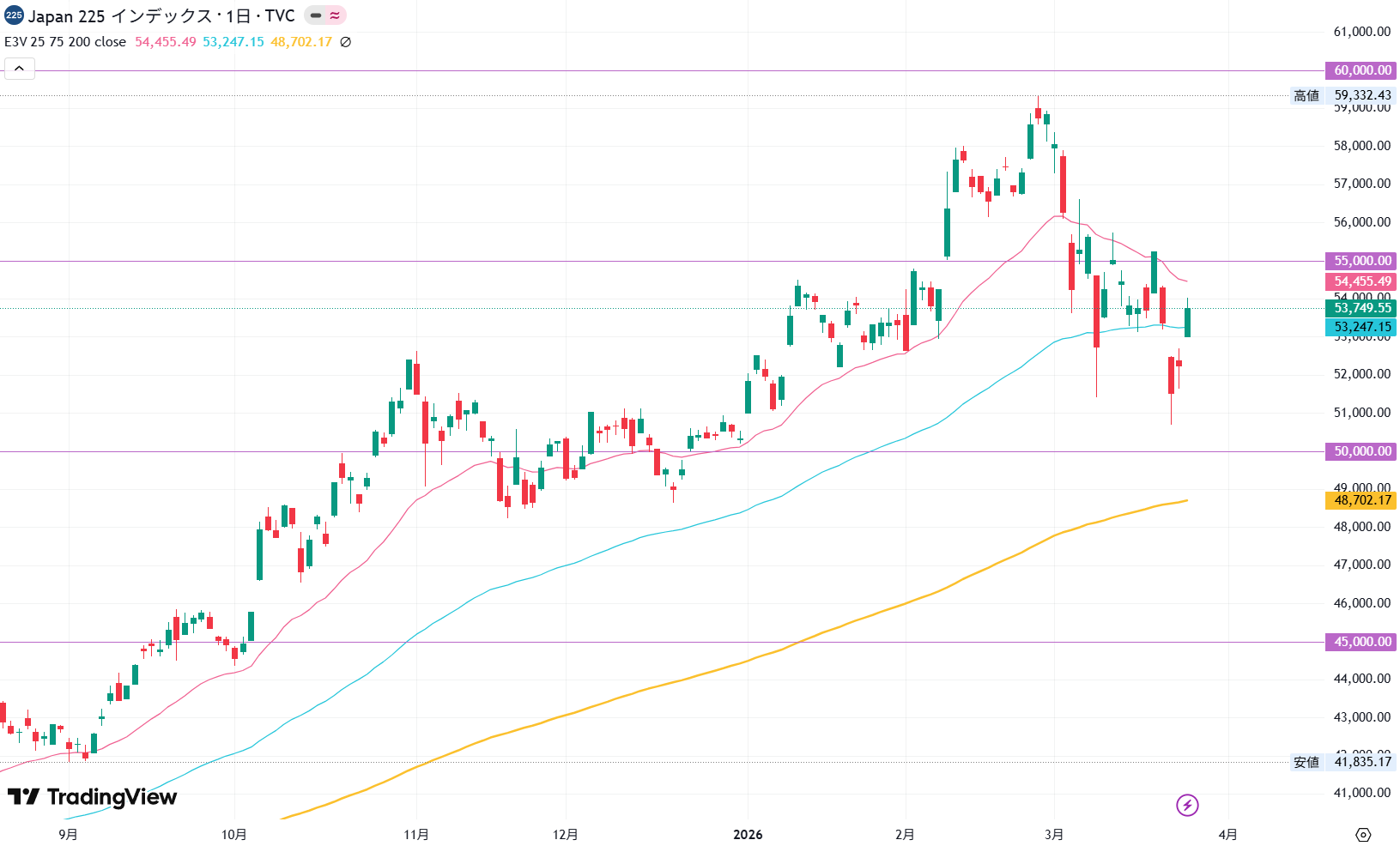 2026年3月25日の日経平均株価